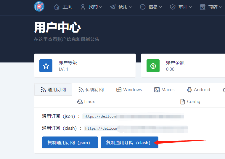 2.1点击“复制通用订阅(clash)”
