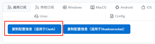 3、点击“复制配置信息(适用于clash)”